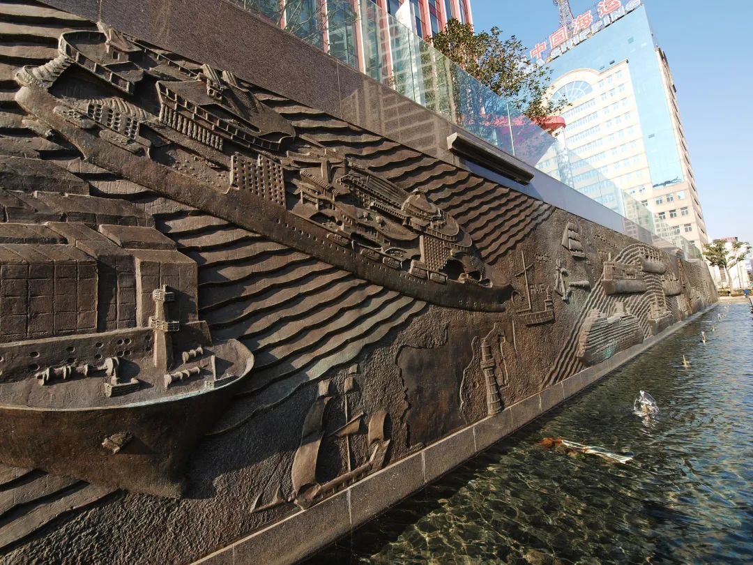 3)2009年 上海国际客运中心大型雕塑与69米大型浮雕壁画《辉煌航运》