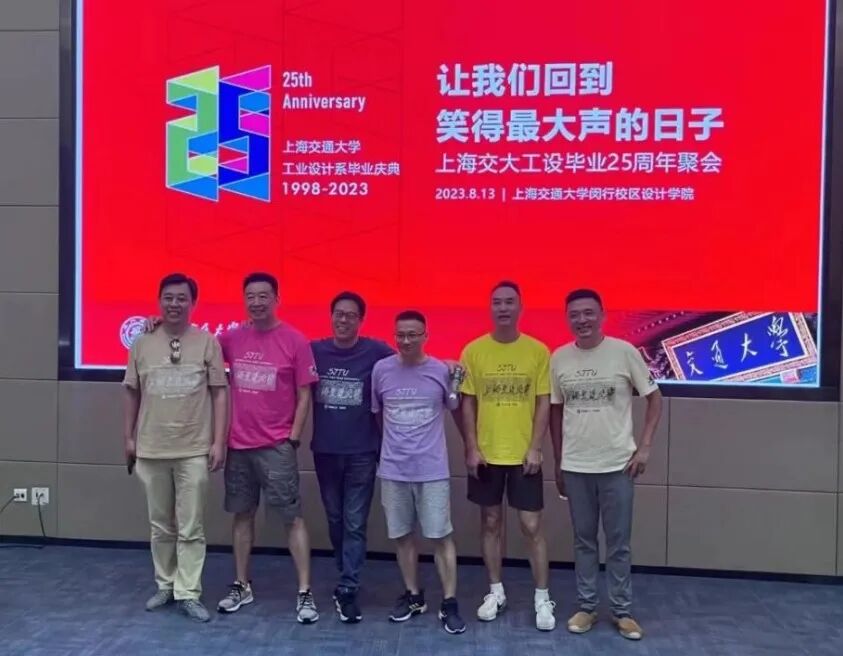 2023年8月13日,上海交通大学工业设计系1998届校友满怀着对母校的眷恋和感恩、对老师和同学的思念和深情,从五湖四海重返闵行校区,共庆毕业25周年。并有幸邀请了时任老师孔繁强、张立群、王洪江等一起参与,重温青春时光,再叙袍泽之情。
