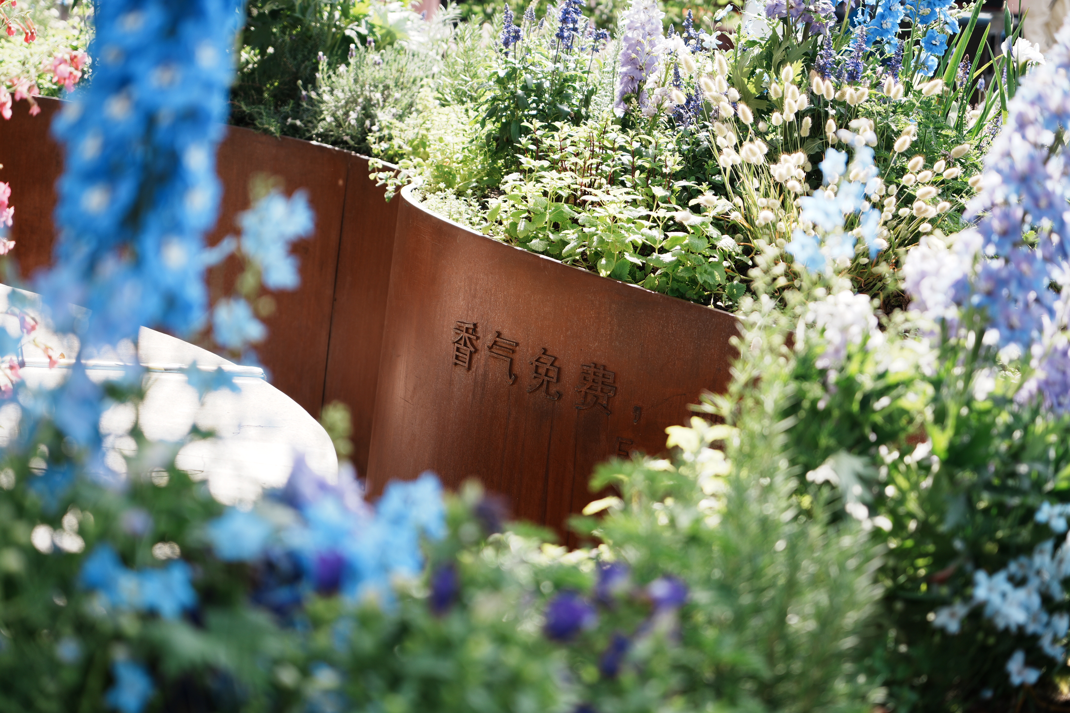 踏入「鸢尾咖啡」花园,仿佛走进了一个被蓝紫色梦幻包裹的世界。这座由风景园林系副教授、Lab D+H上海事务所创始合伙人李中伟及其团队精心打造的花园,以鸢尾花作为主角,巧妙地将不同品种、形态各异的蓝紫色系花卉进行层次铺陈。随着阳光的流转,花卉在光影变幻中,时而明艳,时而朦胧,每一刻都展现出独特的韵味,为游客带来一场沉浸式的视觉盛宴。