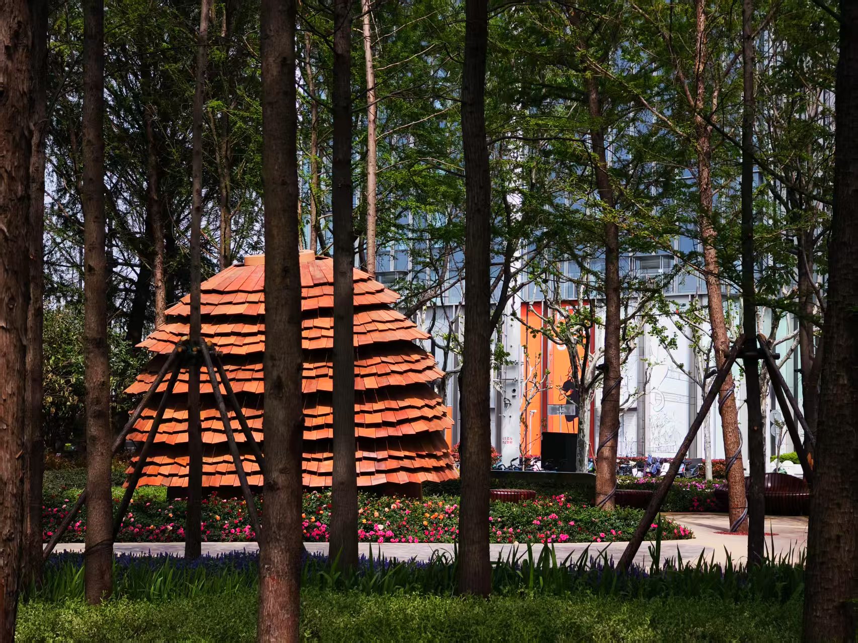 在杉果乐园的设计中,李中伟尽可能保留了原生的水杉林群落,尊重场地既有的生态基底与历史记忆。他以“杉果”为灵感主题,在林下营造了一个融合自然与生活的全年龄共享空间,使原本封闭静止的水杉林重获新生。从儿童的游戏场,到长者的散步小径,再到青年交流的开放草地,空间在林荫中自然展开。这片原本被忽视的林地,借由更新设计重新回归城市公共生活,被真正还给了上海市民,成为人与自然重新相遇的日常场所。
