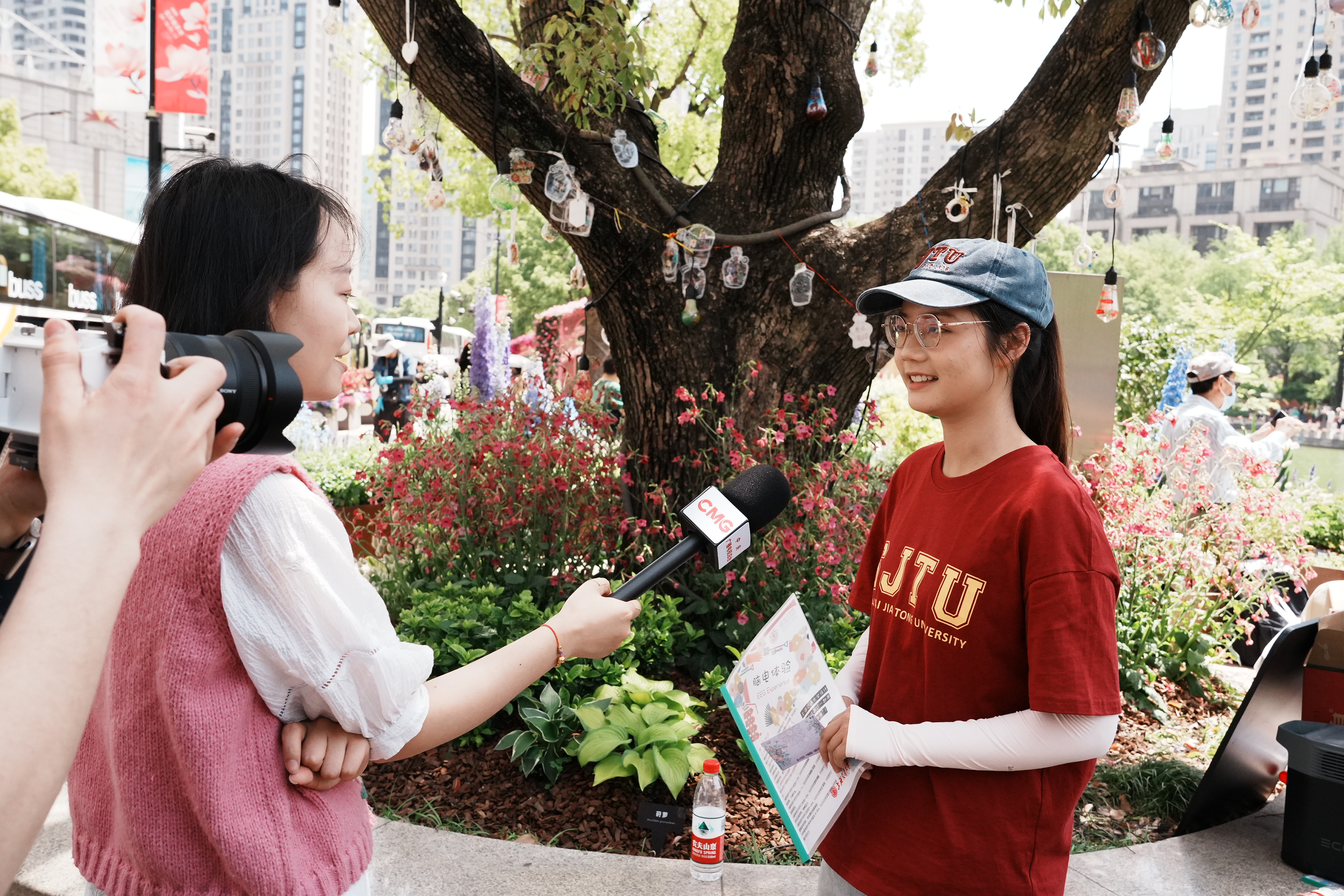 学生团队接受中央广播电视总台等多家媒体采访及现场为游客讲解设计巧思