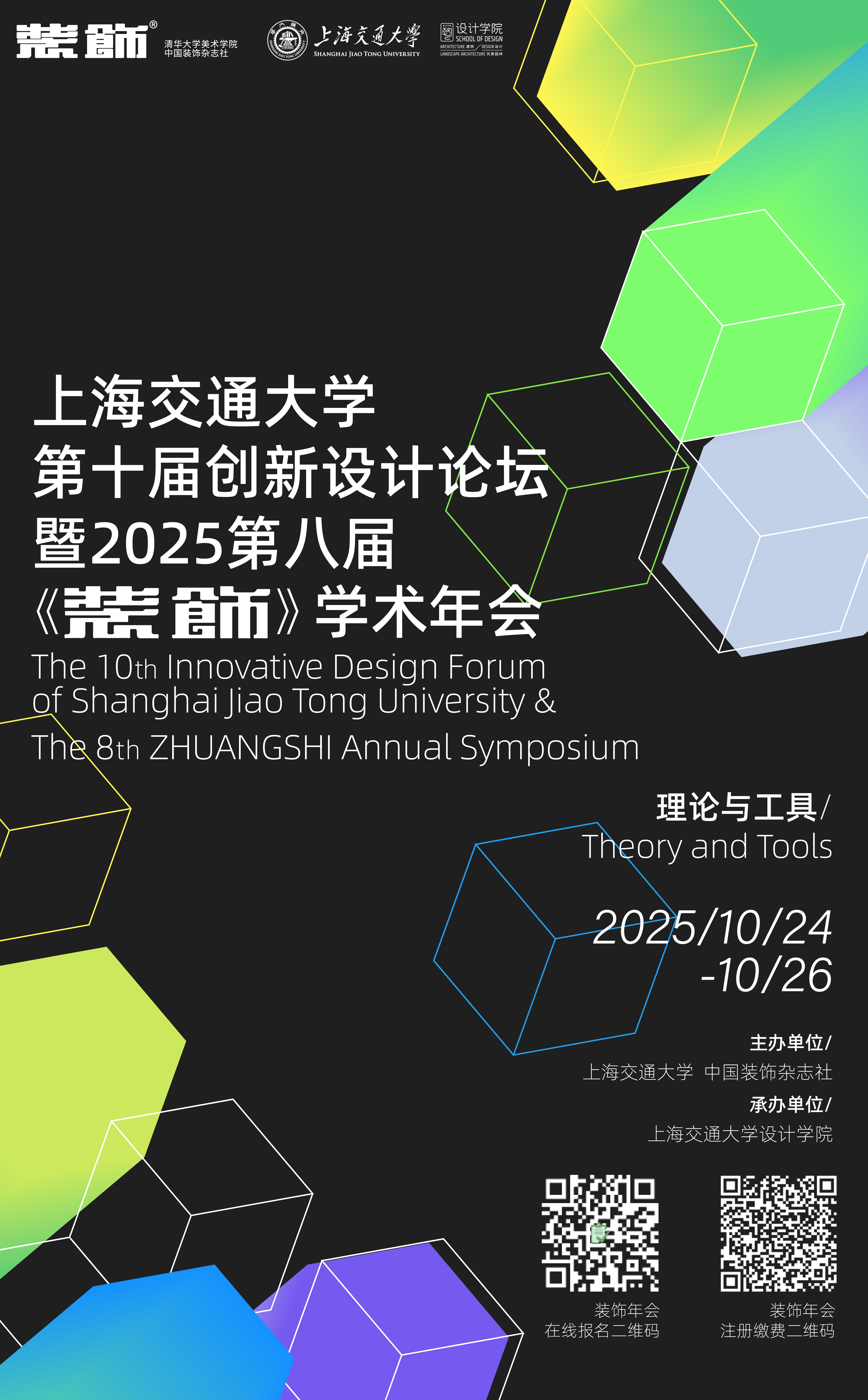 为回顾十年探索之路并前瞻未来设计方向,上海交通大学设计学院将联合《装饰》杂志社,于2025年10月24日至26日共同举办“创新设计论坛十周年学术会议”与“第八届《装饰》学术年会”。两场学术活动一体联动,互为呼应,旨在汇聚海内外顶尖学者与业界领军者,围绕设计研究的理论建构、工具演进、学科交叉与人文回归等关键命题,展开一系列深度对话与思想碰撞。