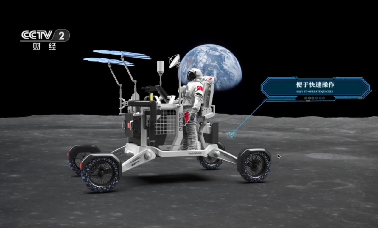 上海交通大学设计学院团队设计的载人月球车,突破了传统月球车的功能局限,从航天员实际需求出发,融合工业设计与前沿技术,打造了一款具有情感交互与智能协同能力的创新产品。采用“需求引领技术”的创新思路——先定义航天员需要什么,再整合机械、 AI、人机工程等技术实现目标。团队的设计在中国载人航天办公室的评审中获得载人月球车征集亮点特色项目的第二名,系列方案得到央视CCTV-2《对话》、CCTV-1《晚间新闻》等栏目多次报道。