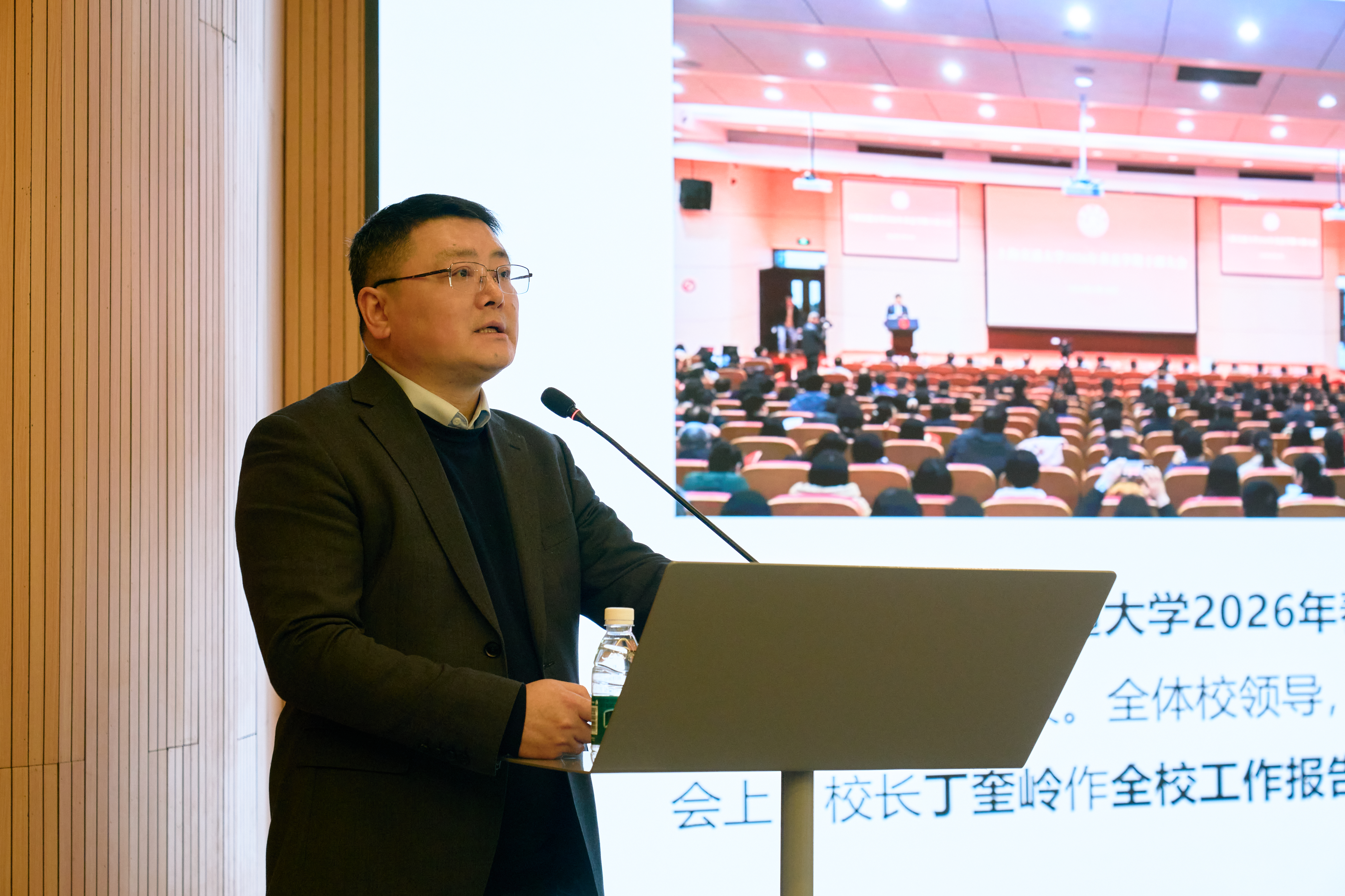 张凯传达了学校干部大会精神,并围绕学院年度工作要点作全面介绍。他指出,要深入学习贯彻学校第十二次党代会精神,将其落实在学院“十五五”发展的各项任务中。他立足当前国内外形势新变化,聚焦国家“十五五”规划、上海市及学校发展重点,从学科发展、师资队伍建设、科研平台建设、人才培养和课程改革、国际合作交流等方面,对学院年度重点工作进行系统部署。他表示,要抓好基层党建和精神文明建设,推进党建赋能学科建设,守好意识形态和师德师风底线,聚焦内涵建设精准发力,营造风清气正、团结向上的学院生态,凝心聚力推动高质量发展。