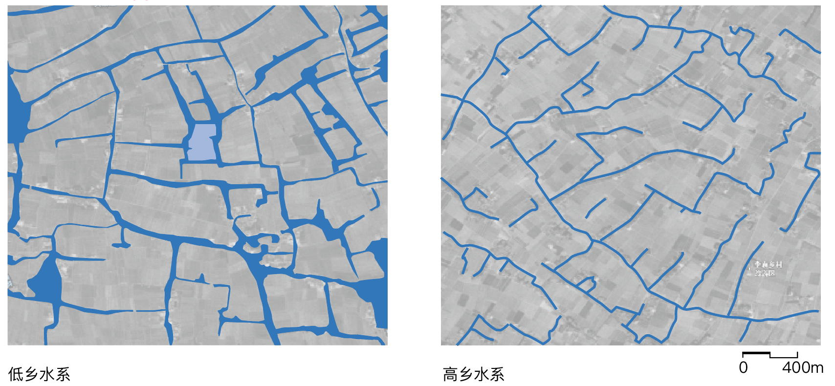 以江南的太湖流域东部地区为例,可以发现当地的水乡聚落风土有许多细微的差异,其中最典型的差异是当地高乡和低乡的模式差异。高乡和低乡首先是地理层面的差异,高乡是相对当地的低乡而言的,高乡地区的海拔约2-5米,低乡平均海拔只有1-2米。两大区域以长江入海口的古代沙堤“冈身”为主要的界线。在清代的苏州和松江两府的范围中,高乡的范围包括了上海县、嘉定、南汇、奉贤、金山、太仓,低乡的范围包括苏州、吴江,而松江、昆山、常熟则同时包含了高乡和低乡。虽然高乡和低乡仅有2米左右的高差,但是对古代农业、交通、地方习俗等方面有着深刻的影响。