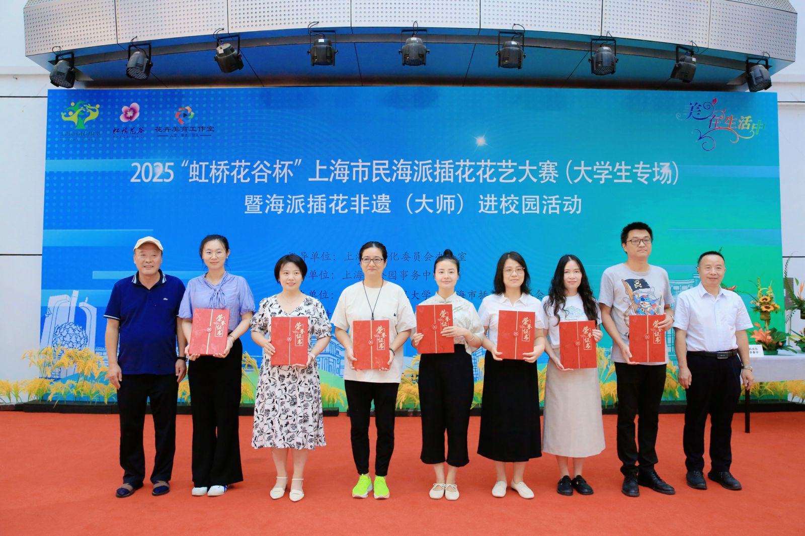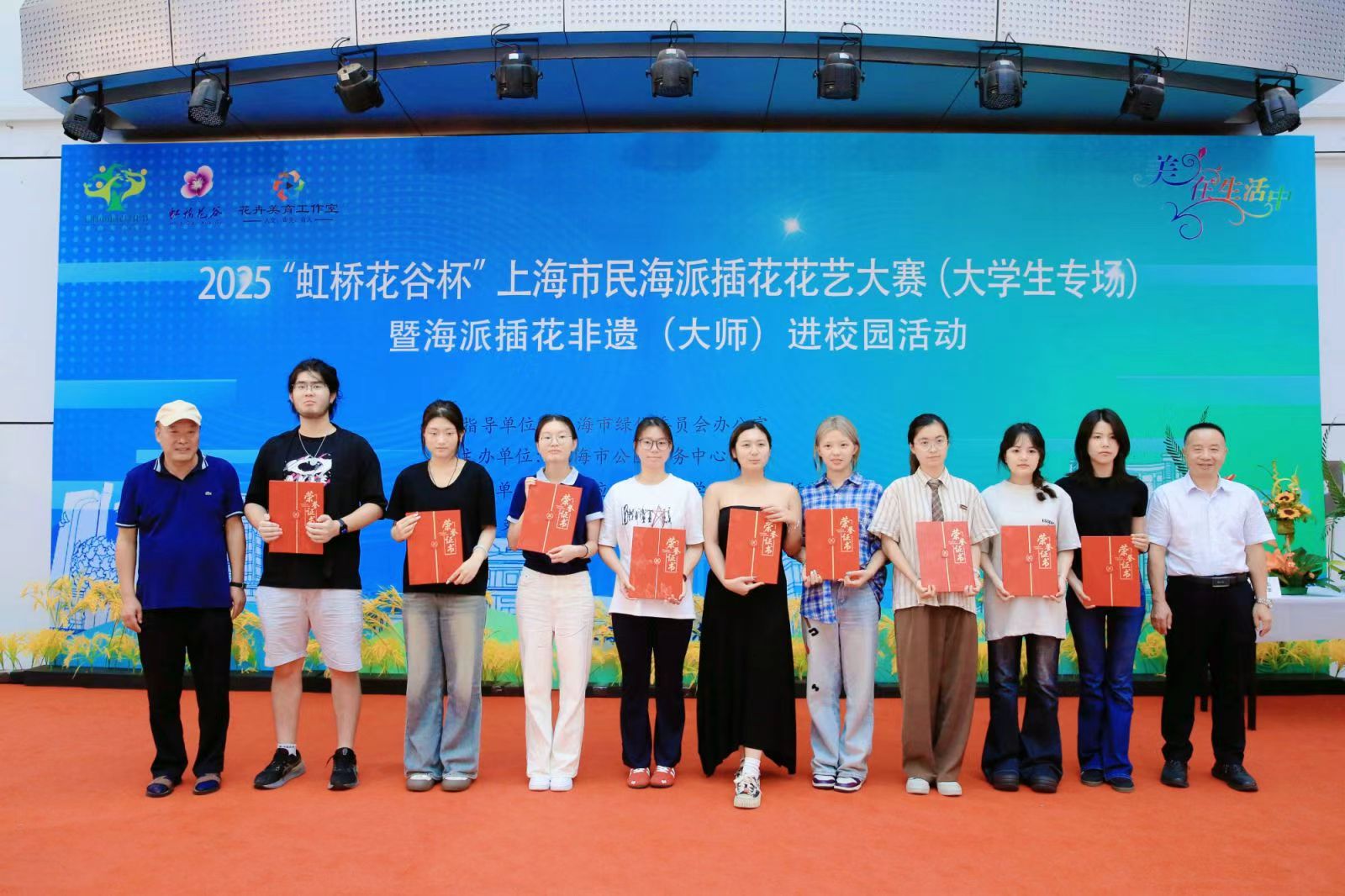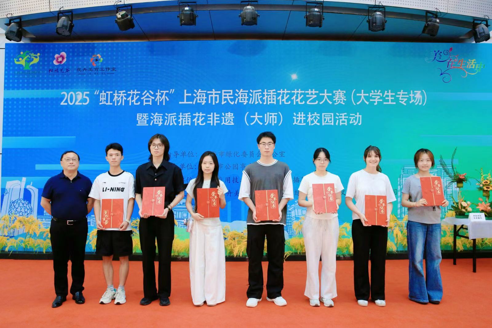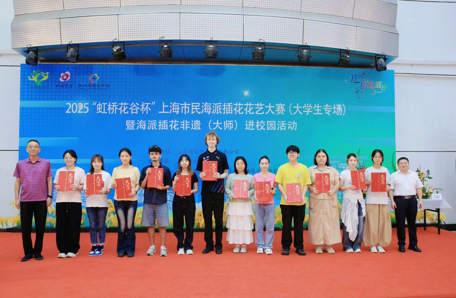 2025年10月12日,“虹桥花谷”2025年上海市民海派插花花艺大赛(大学生专场)暨非遗“海派插花”(大师)进校园活动在上海应用技术大学奉贤校区成功举办。来自上海应用技术大学、上海交通大学、同济大学、华东理工大学、上海师范大学、上海旅游高等专科学校、上海商学院7所高校的经过初赛后70名优秀选手参加了此次活动。